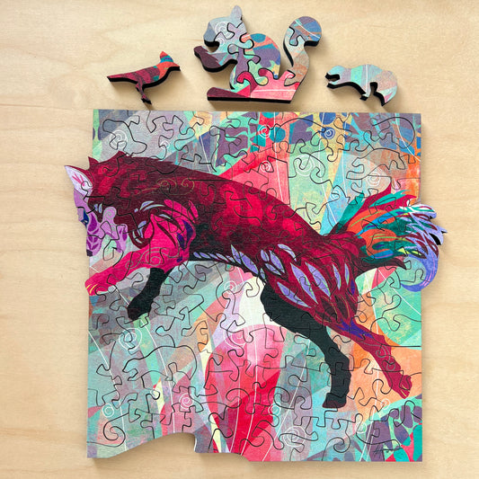 Red Fox Wooden Jigsaw Puzzle by Adolfo Valle