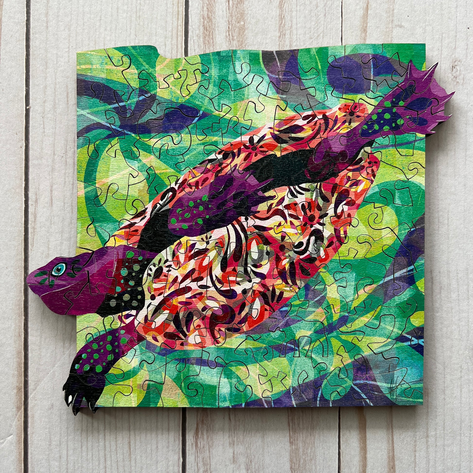 Painted Turtle Wooden Jigsaw Puzzle by Adolfo Valle